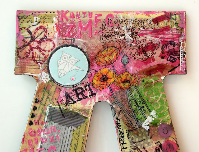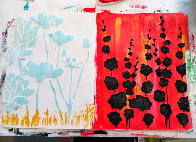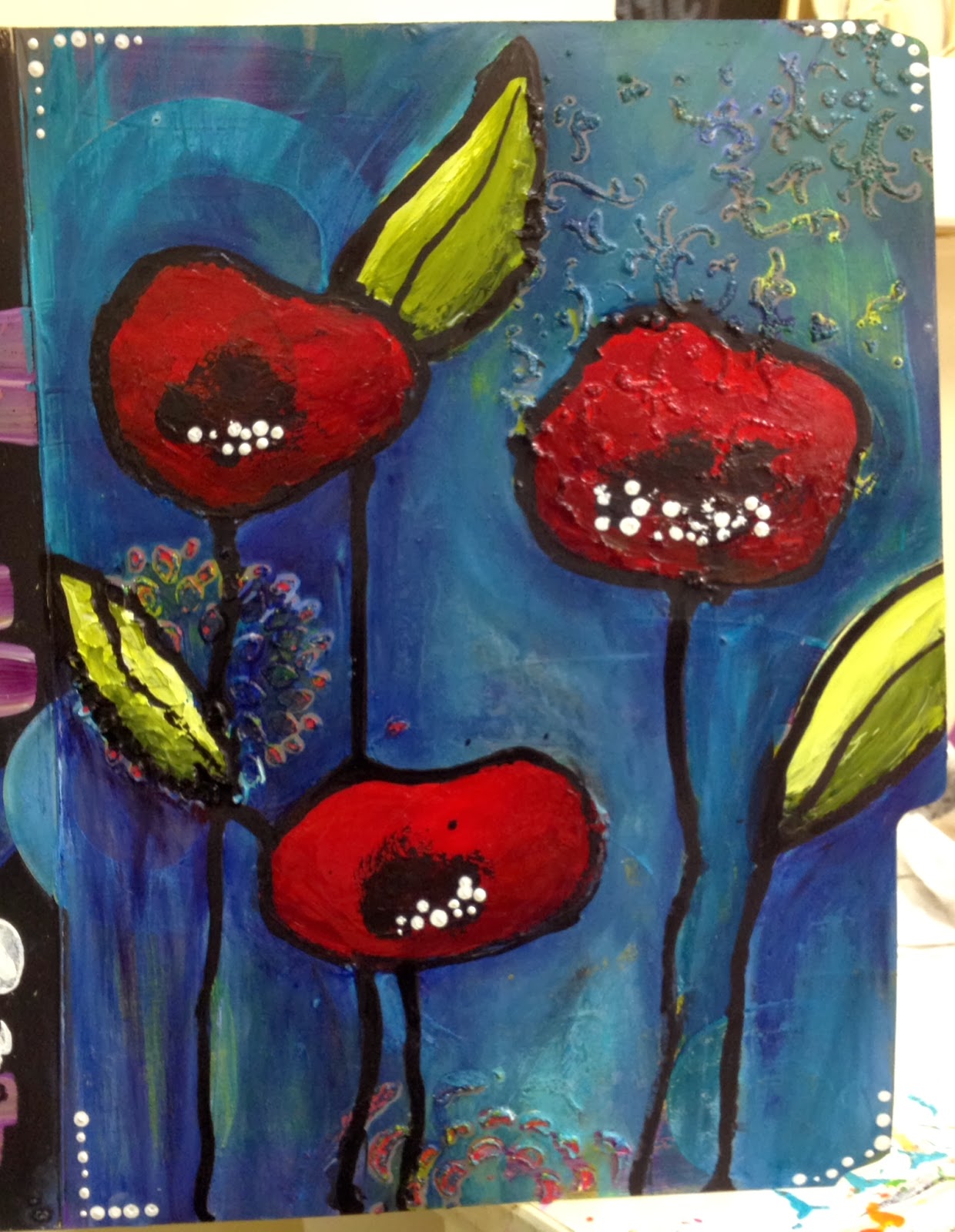 Inspired Artist" class, which is a TERRIFIC choice if you want to learn about A LOT of techniques and mediums. We learned about and used acrylic paints, oil pastels, pan pastels, gelatos, stencils, watercolors, image transfer and a wide array of mediums like tar gel, molding paste, glass beads, etc. and even stamp carving!