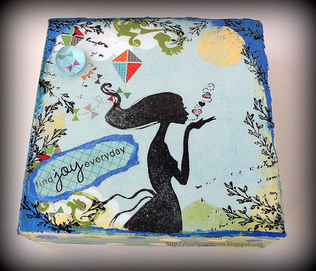 Ooh, how fun that you are dabbling in a new craft, Maria! I am always so drawn to the mixed media canvases I see, and I think your first one is a real cutie! LOVE that adorable silhouette image and love that she's done in bold black. You created a fabulous framework all around her, too, and I just love that sentiment. A motto to live by every day!